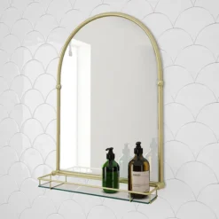Chatsworth Traditional 700 X 490mm Arched Mirror With Glass Shelf – Brushed Brass