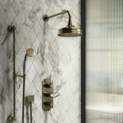 Chatsworth 1928 Antique Brass Traditional Shower With Concealed Valve, 8″ Head + Handset